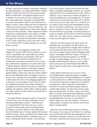 tion applications detect that a filler or labeler is said Reardon. “Glass inspection is done before