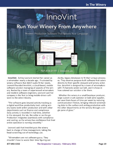 company is the first to bring mobile-driven soft- Whether the winery is a small boutique producer,
