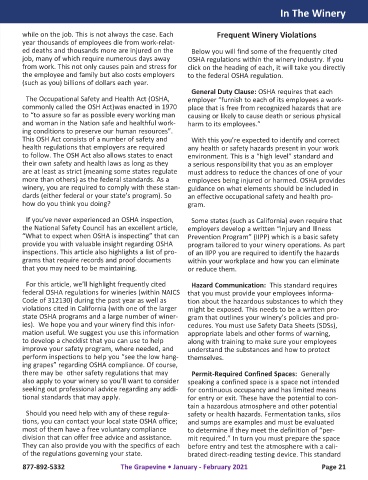 while on the job. This is not always the case. Each Frequent Winery Violations
