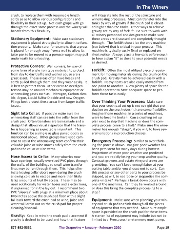 fall back toward the crush pad so wine, juice and Equipment: Make sure when planning your win-