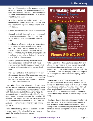 crush pad. Contact the appropriate people to Winemaking Consultant