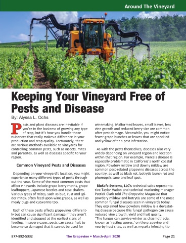 affect vineyards include grape berry moths, grape BioSafe Systems, LLC’s technical sales representa-