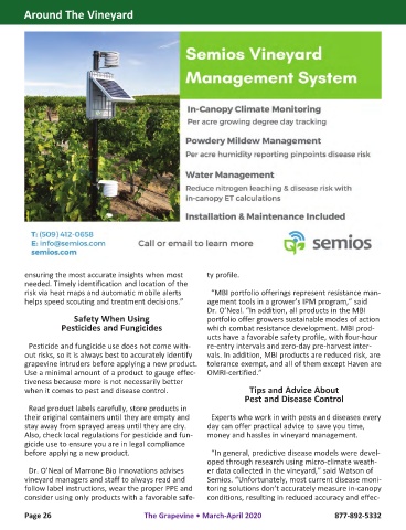 vineyard managers and staff to always read and Semios. “Unfortunately, most current disease moni-
