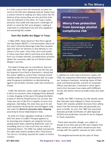 ient state for direct-to-consumer wine shipping, duce or bottle. As such, the TABC has requested