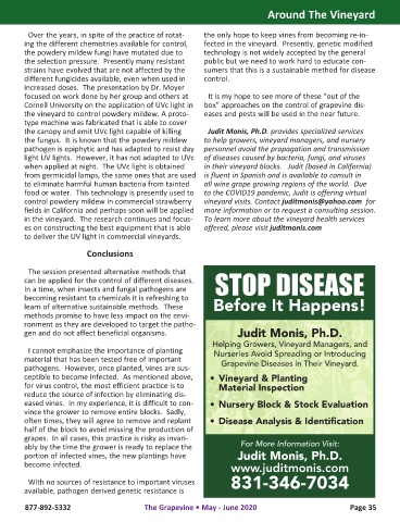 the vineyard to control powdery mildew. A proto- eases and pests will be used in the near future.