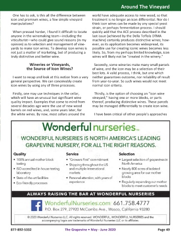 truly distinctive and better wine. wines will likely not be “created in the winery.”