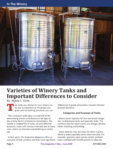 winemaking process and deserve to be high on Winery tanks typically fall into two broad catego-