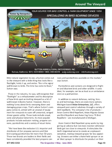 bird-scaring pyrotechnics for more than 50 years. sensation, making vineyard grapes far less appeal-