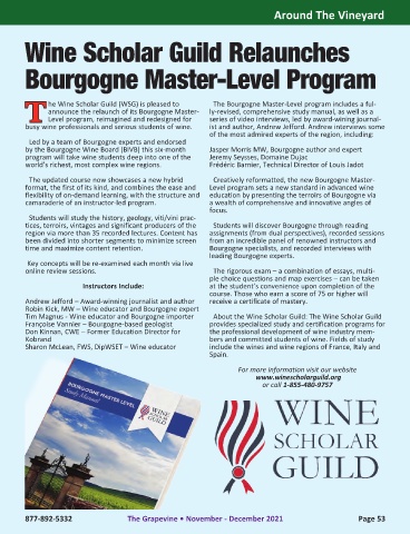 T he Wine Scholar Guild (WSG) is pleased to The Bourgogne Master-Level program includes a ful-