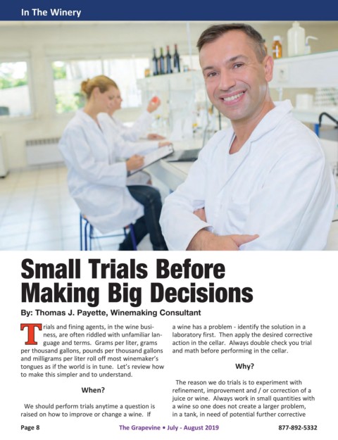 T rials and fining agents, in the wine busi- a wine has a problem - identify the solution in a