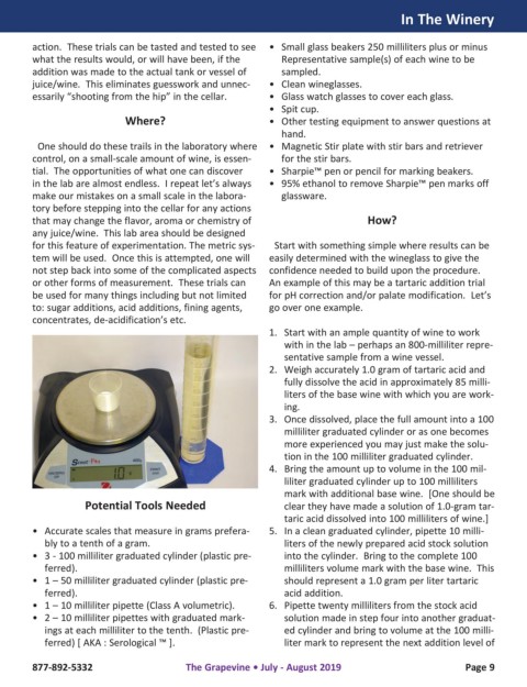 or other forms of measurement. These trials can An example of this may be a tartaric addition trial