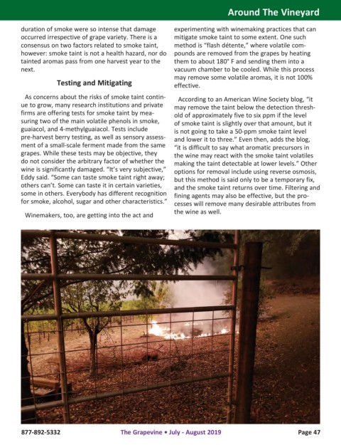 As concerns about the risks of smoke taint contin- According to an American Wine Society blog, “it