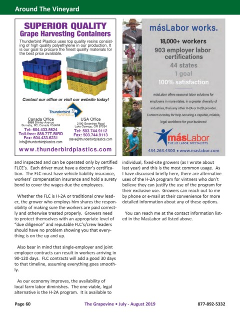 Page 60 The Grapevine • July - August 2019 877-892-5332