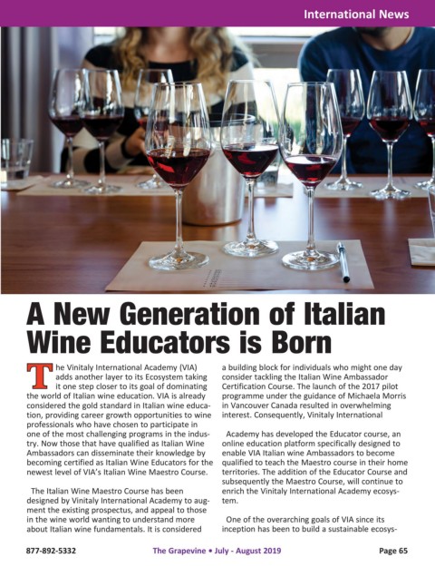 newest level of VIA’s Italian Wine Maestro Course. territories. The addition of the Educator Course and